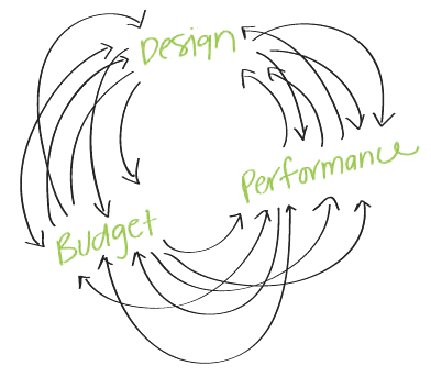 AspenGrove’s approach to home building is unique in the industry. From the initial concept, we continually refine and revise our project plan to keep design goals, performance considerations, and the budget in balance. Each pillar informs the decisions made in the other two, throughout the building process.